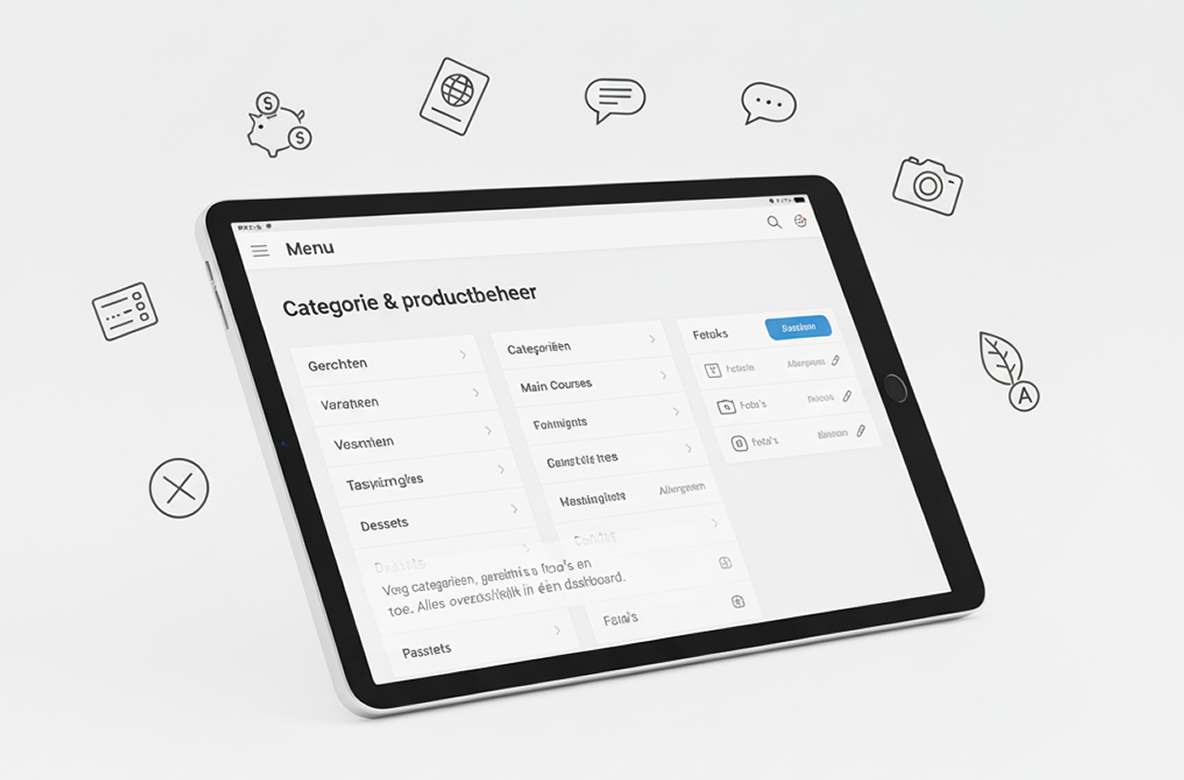 Beheer eenvoudig categorieën, producten en prijzen. Alle wijzigingen zijn direct zichtbaar.