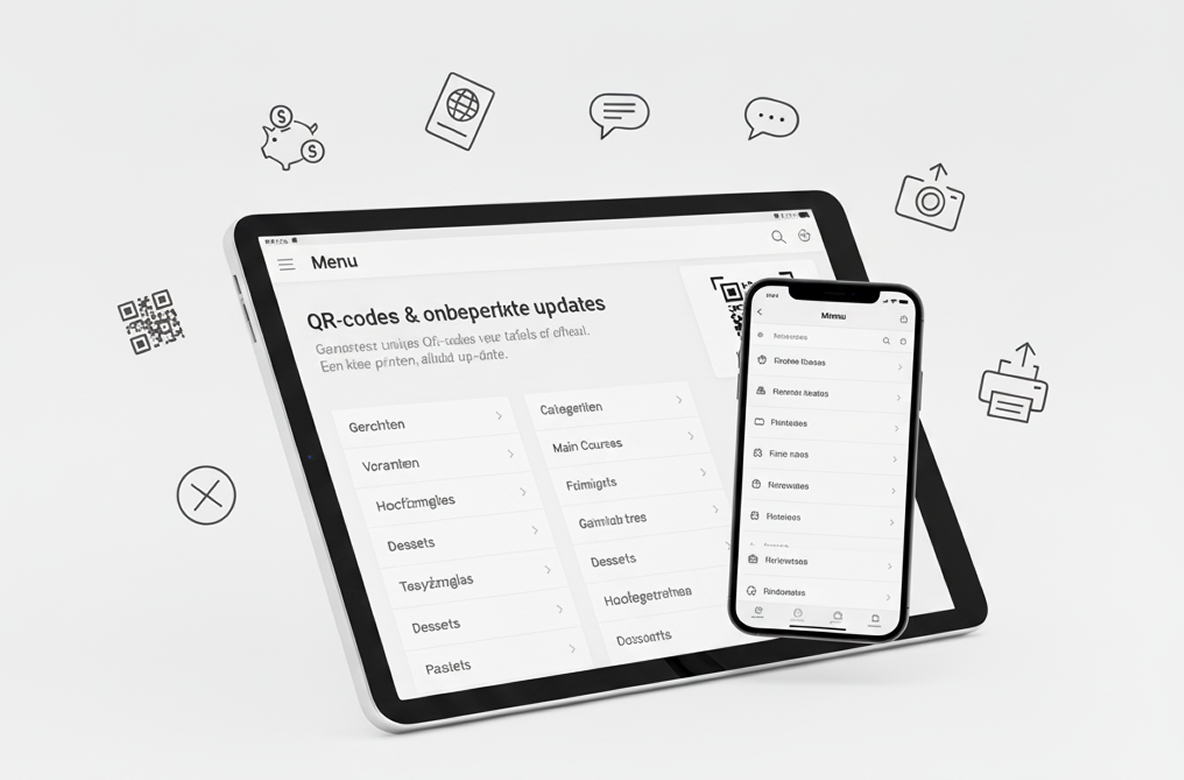 Menukaarten zonder printkosten. Pas prijzen, producten en vertalingen direct live aan.